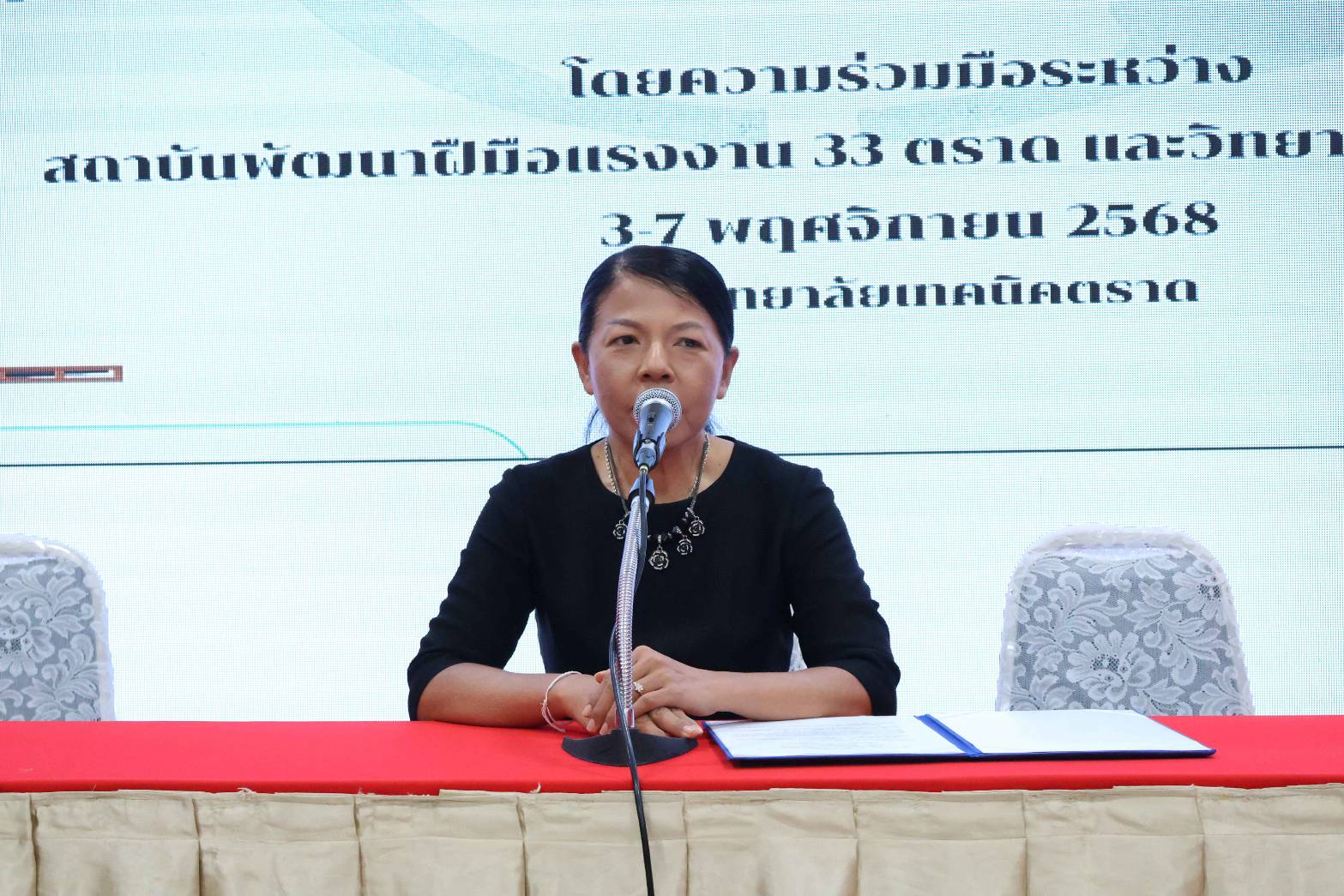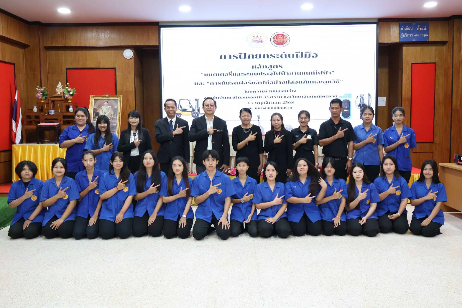 วันอังคารที่ 4 พฤศจิกายน 2568 เวลา 08.30 น. วิทยาลัยเทคนิคตราด ร่วมกับ สถาบันพัฒนาฝีมือแรงงาน 33 ตราด จัดโครงการอบรมหลักสูตรแบตเตอรี่และระบบประจุไฟฟ้ายานยนต์ และการขับรถฟอร์คลิฟท์อย่างปลอดภัยและถูกวิธี ระหว่างวันที่ 3 - 7 พฤศจิกายน 2568 ณ วิทยาลัยเทคนิคตราด เขต 2 โดยได้รับเกียรติจากนางสาวลักขณา รุ่งเรือง ผู้อำนวยการสถาบันพัฒนาฝีมือแรงงาน 33 ตราดอบรมหลักสูตรแบตเตอรี่และระบบประจุไฟฟ้ายานยนต์ และการขับรถฟอร์คลิฟท์อย่างปลอดภัยและถูกวิธี ระหว่างวันที่ 3 - 7 พฤศจิกายน 2568 ณ วิทยาลัยเทคนิคตราด เขต 2 โดยได้รับเกียรติจากนางสาวลักขณา รุ่งเรือง ผู้อำนวยการสถาบันพัฒนาฝีมือแรงงาน 33 ตราด และการขับรถฟอร์คลิฟท์อย่างปลอดภัยและถูกวิธี ระหว่างวันที่ 3 - 7 พฤศจิกายน 2568 ณ วิทยาลัยเทคนิคตราด เขต 2 โดยได้รับเกียรติจากนางสาวลักขณา รุ่งเรือง ผู้อำนวยการสถาบันพัฒนาฝีมือแรงงาน 33 ตราด เป็นประธานในพิธีเปิด และนายจิรพงค์ ร่มเงิน ผู้อำนวยการวิทยาลัยเทคนิคตราด กล่าวรายงานวัตถุประสงค์ของโครงการ ซึ่งมีวิทยากรผู้ทรงวุฒิ มาให้ความรู้ทั้งภาคทฤษฎีและภาคปฏิบัติให้กับนักศึกษาสาขาเทคนิคยานยนต์ไฟฟ้า และสาขาวิชาโลจิสติกส์และซัพพลายเชน เพื่อให้นักศึกษามีความรู้ความเข้าใจที่ถูกต้องและมีทักษะเชิงปฏิบัติในการบำรุงรักษา ตรวจสอบ และซ่อมแซมระบบได้อย่างปลอดภัย และมีประสิทธิภาพสูงสุด เพื่อรองรับการขยายตัวของตลาดอุตสาหกรรมในประเทศไทย โดยมีคณะผู้บริหาร ครู เข้าร่วมพิธีเปิดในครั้งนี้ ณ ห้องประชุมชั้น 2 อาคารวิทยบริการ วิทยาลัยเทคนิคตราด เขต 2