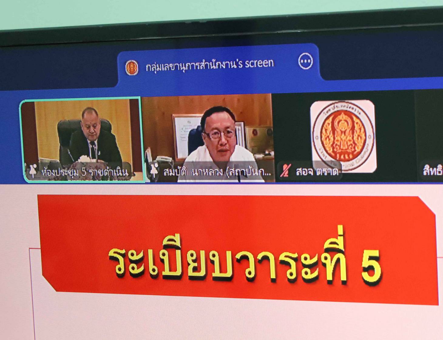 วันพฤหัสบดีที่ 6 พฤศจิกายน 2568 นายจิรพงค์ ร่มเงิน ผู้อำนวยการวิทยาลัยเทคนิคตราด พร้อมด้วยนายยงยุทธ พนัสนอก รองผู้อำนวยการฝ่ายบริหารทรัพยากร นายเฉลิมชัย วินทะไชย รองผู้อำนวยการฝ่ายพัฒนากิจการนักเรียน นักศึกษา และนายวรพจน์ ตรีรัตน์ฤดี ครูชำนาญการพิเศษ ปฏิบัติหน้าที่แทนรองผู้อำนวยการฝ่ายแผนงานและความร่วมมือ ร่วมประชุมผู้บริหารสำนักงานคณะกรรมการการอาชีวศึกษา ครั้งที่ 6/2568 ผ่านระบบ ZOOM โดยมีระเบียบวาระเสนอให้ที่ประชุมทราบ ในเรื่องสมเด็จพระนางเจ้าสิริกิติ์ พระบรมราชินีนาถ พระบรมราชชนนีพันปีหลวง เสด็จสวรรคต /การติดตามผลการเบิกจ่ายงบประมาณ (งบลงทุน) ปีงบประมาณ พ.ศ. 2568 / สรุปงบประมาณรายจ่ายประจำปีงบประมาณ พ.ศ. 2569 และเงินจัดสรรงวดที่ 1 / การปรับอัตราค่าอุปกรณ์การเรียน (เฉพาะสาขาวิชา) ของผู้เรียนสายอาชีพอาชีวศึกษา โดยมีคณะผู้บริหารเข้าร่วมประชุม ณ ห้องปฏิบัติราชการผู้อำนวยการวิทยาลัยเทคนิคตราด อาคารวิทยบริการ วิทยาลัยเทคนิคตราด เขต 2