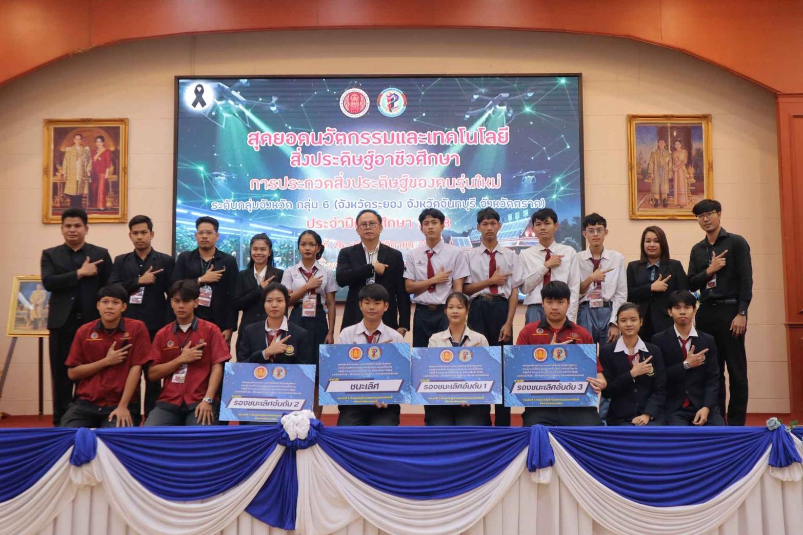 วันศุกร์ที่ 28 พฤศจิกายน 2568 เวลา 14.00 น. นายจิรพงค์ ร่มเงิน ผู้อำนวยการวิทยาลัยเทคนิคตราด พร้อมด้วยนายยงยุทธ พนัสนอก รองผู้อำนวยการฝ่ายบริหารทรัพยากร และนางสาวลัลน์ลลิต ปรีชาจารย์ รองผู้อำนวยการฝ่ายวิชาการ คณะครู และนักเรียน นักศึกษา ร่วมพิธีปิดสุดยอดนวัตกรรมและเทคโนโลยีสิ่งประดิษฐ์อาชีวศึกษา การประกวดสิ่งประดิษฐ์ของคนรุ่นใหม่ ระดับกลุ่มจังหวัด กลุ่มที่ 6 (จังหวัดระยอง จังหวัดจันทบุรี จังหวัดตราด) ประจำปีการศึกษา 2568 โดยได้รับเกียรติจาก ดร.กมล เรียงไธสง ผู้อำนวยการวิทยาลัยเทคนิคจันทบุรีปฏิบัติหน้าที่ผู้อำนวยการสำนักงานอาชีวศึกษาจังหวัดจันทบุรี เป็นประธานในพิธีปิด และได้รับเกียรติจากผู้บริหารสถานศึกษาในสังกัดอาชีวศึกษาจังหวัด มอบรางวัลให้กับผู้ชนะการประกวดสิ่งประดิษฐ์ของคนรุ่นใหม่ ระดับกลุ่มจังหวัด กลุ่มที่ 6 ซึ่งผู้ที่ชนะการประกวดฯ จะได้เป็นตัวแทนของสถานศึกษา ระดับกลุ่มจังหวัด เข้าร่วมการประกวดสิ่งประดิษฐ์ฯ ในระดับภาค ภาคตะวันออกและกรุงเทพมหานคร ในระหว่างวันที่ 22 -24 ธันวาคม 2568 ณ วิทยาลัยเทคนิคปทุมธานีต่อไป