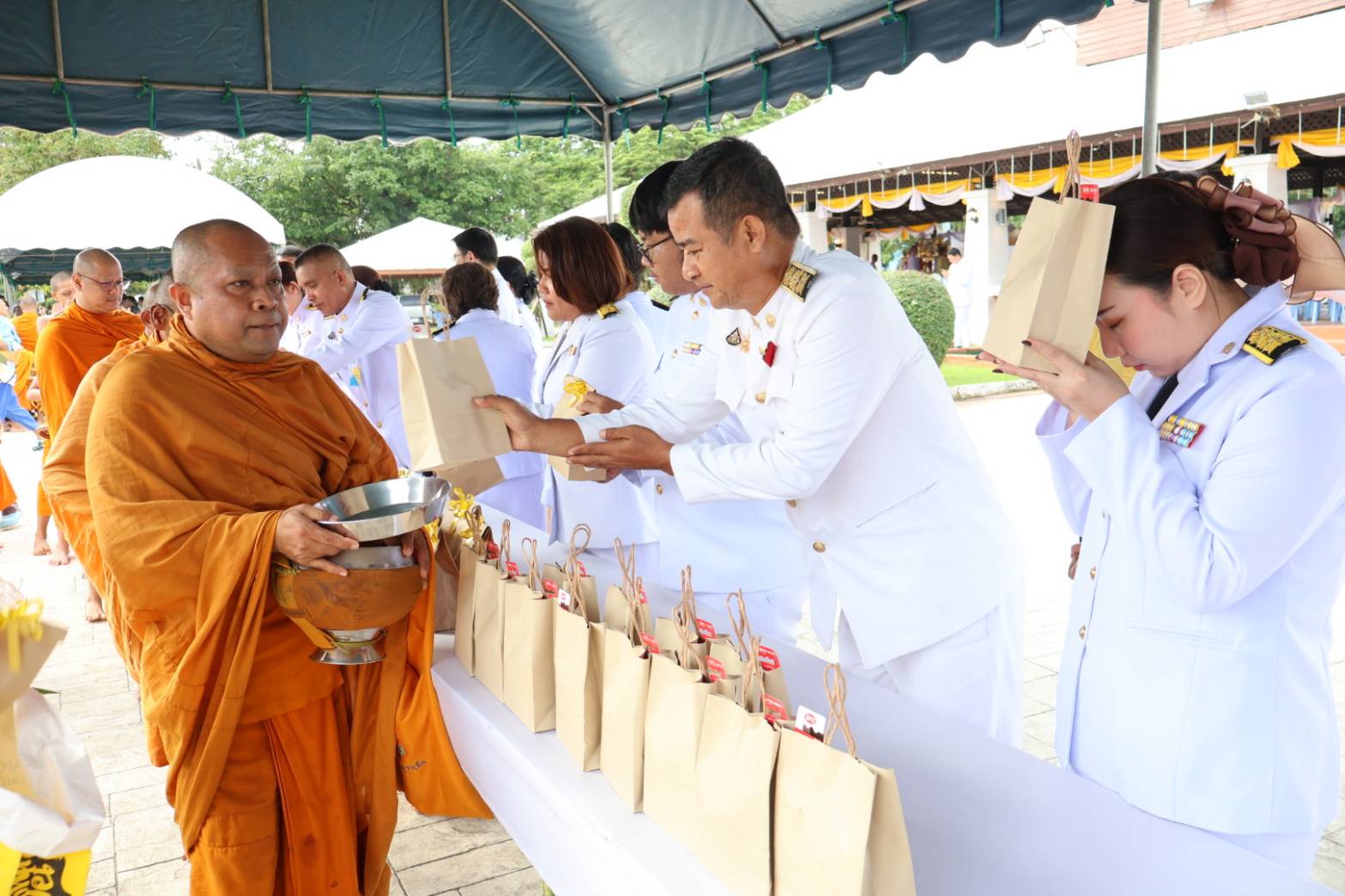วันจันทร์ที่ 13 ตุลาคม 2568 เวลา 07.00 น. นายเฉลิมชัย วินทะไชย รองผู้อำนวยการฝ่ายพัฒนากิจการนักเรียน นักศึกษา พร้อมด้วยนางสาวพรรณภัทร กนกอังกูร ครูสาขาวิชาการโรงแรม ร่วมพิธีทำบุญตักบาตรถวายพระราชกุศล เนื่องในวันนวมินทรมหาราช พระบาทสมเด็จพระบรมชนกาธิเบศร มหาภูมิพลอดุลยเดชมหาราช บรมนาถบพิตร โดยมีนายณัฐพงษ์ สงวนจิตร ผู้ว่าราชการจังหวัดตราด เป็นประธานในพิธี พร้อมด้วยข้าราชการ หัวหน้าส่วนราชการ ผู้แทนจากหน่วยงานต่างๆ เข้าร่วมพิธี ณ บริเวณศาลา 100 ปี ตราดรำลึก และถนนด้านหน้าลานพระบรมราชานุสาวรีย์รัชกาลที่ 5 หน้าศาลากลางจังหวัดตราด