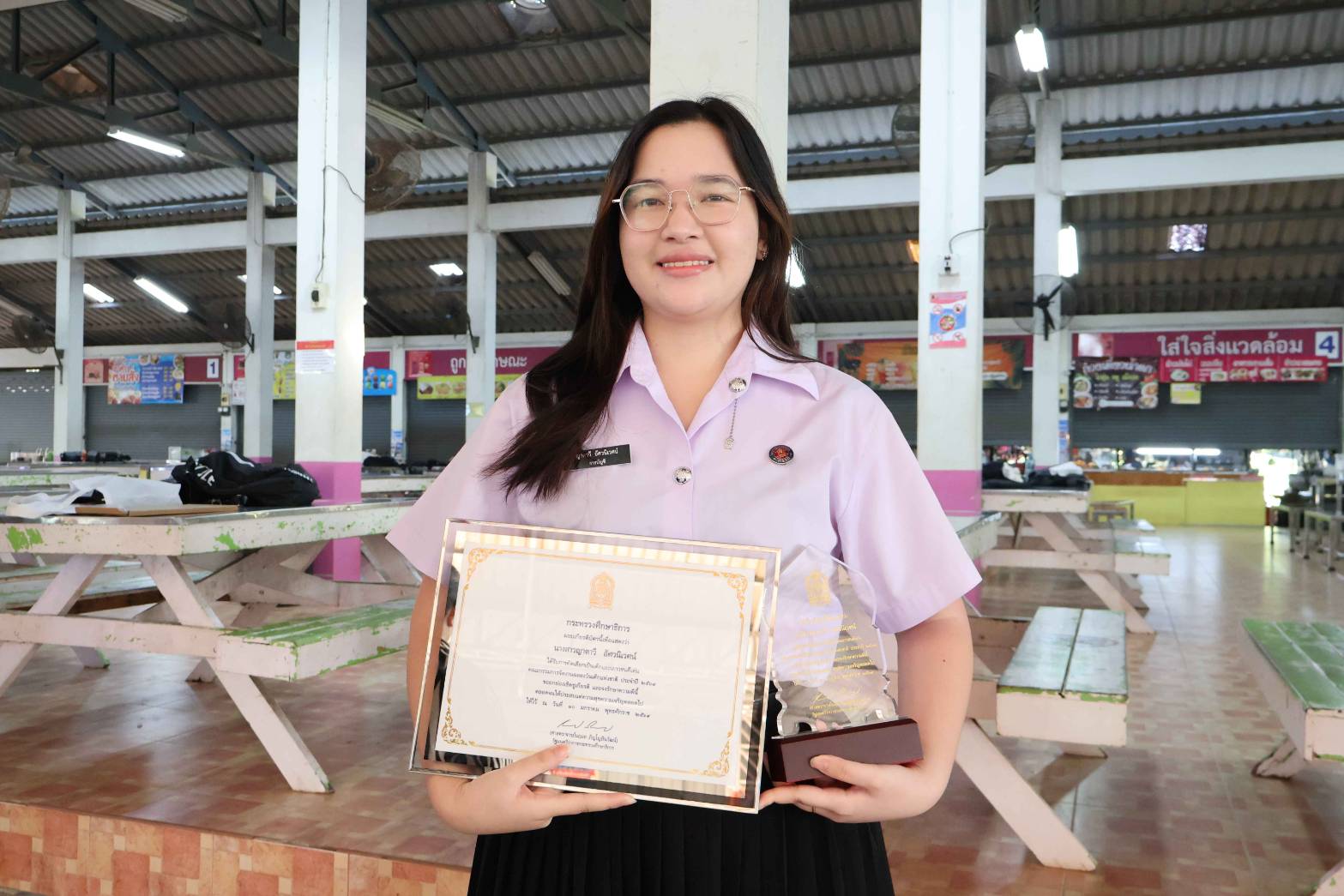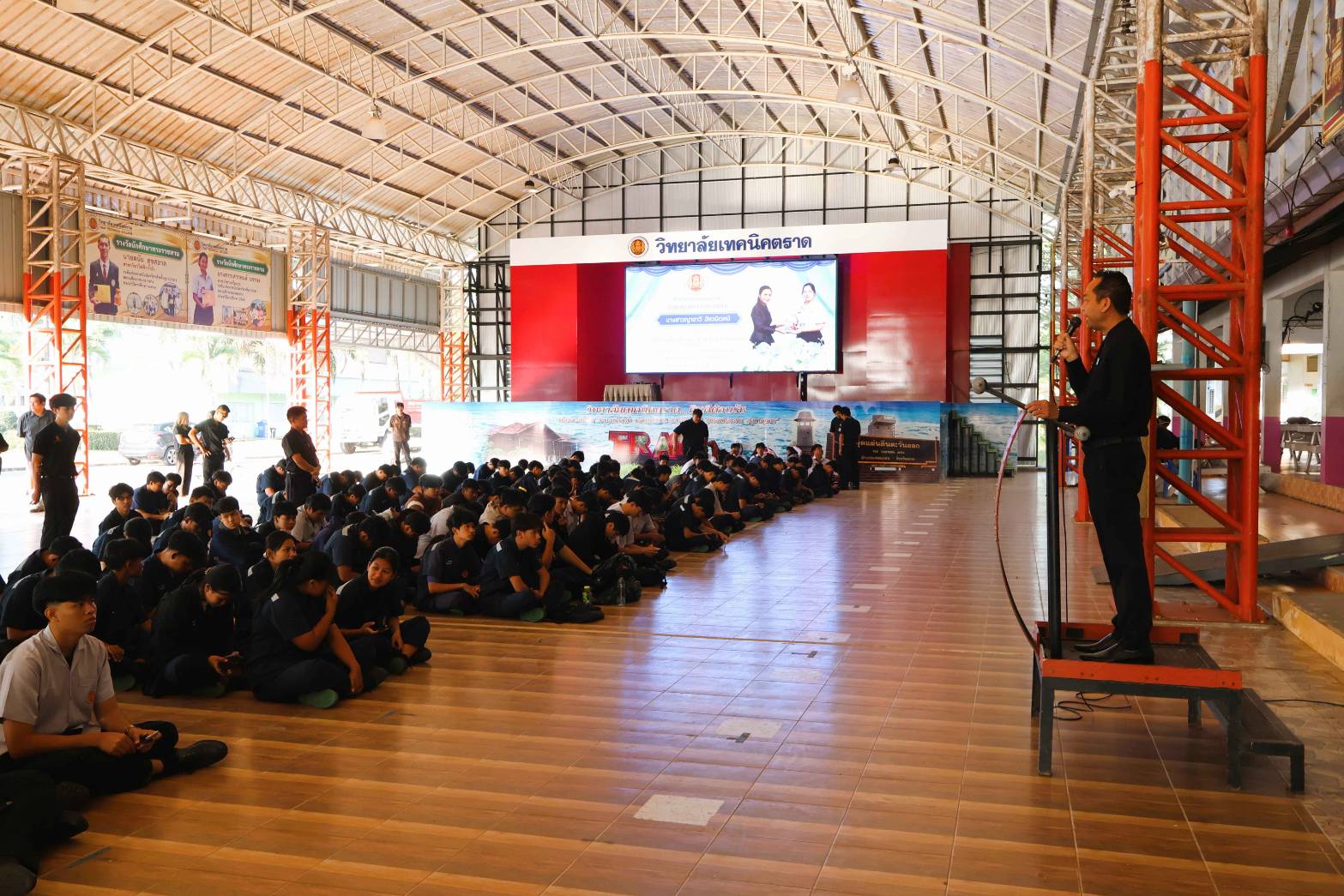 วันอังคารที่ 13 มกราคม 2569 เวลา 08.15 น. นายยงยุทธ พนัสนอก รองผู้อำนวยการฝ่ายบริหารทรัพยากร และนายสราวุธ เรืองขจิต รองผู้อำนวยการฝ่ายแผนงานและความร่วมมือ ได้ให้เกียรติมอบโล่รางวัล และแสดงความยินดีกับ นางสาวญาตาวี อัศวนิเวศน์ นักศึกษาระดับชั้นปวส. 1 สาขาวิชาการบัญชี และนายมงคลศักดิ์ ดวงพุทธา ครูที่ปรึกษา ที่ได้รับโล่เกียรติคุณ “เด็กและเยาวชนดีเด่น” เนื่องในวันเด็กแห่งชาติ ประจำปี 2569 ที่สร้างชื่อเสียงให้กับวิทยาลัยฯ พร้อมทั้งกล่าวให้โอวาทกับนักเรียน นักศึกษา โดยมีคณะครู บุคลากรทางการศึกษา และนักเรียน นักศึกษา ร่วมแสดงความยินดี ณ โดมอเนกประสงค์ วิทยาลัยเทคนิคตราด เขต 2