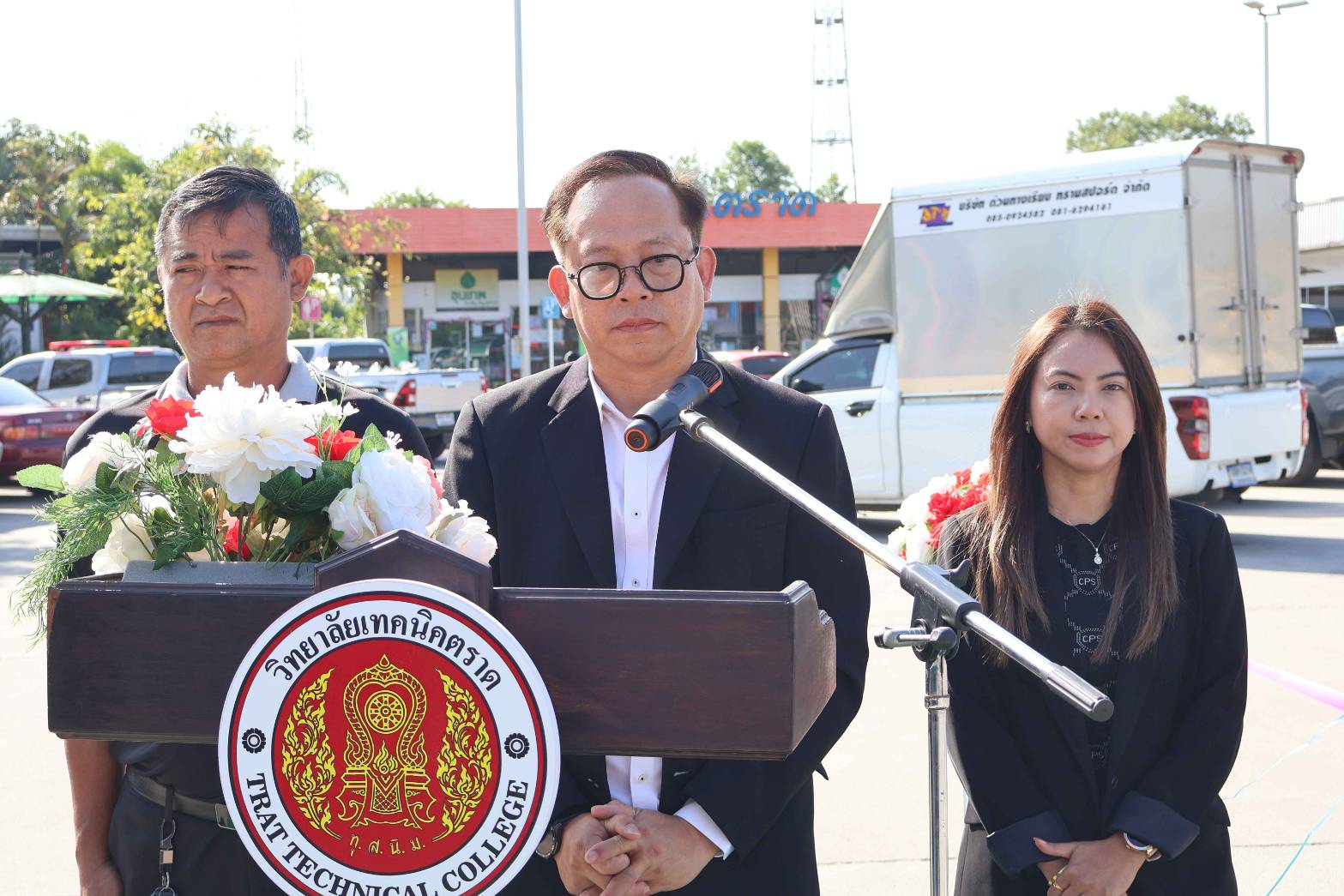วันอังคารที่ 30 ธันวาคม 2568 เวลา 09.30 น. วิทยาลัยเทคนิคตราด ดำเนินโครงการ “อาชีวะ - ขนส่ง อาสาช่วยประชาชนเทศกาลปีใหม่ 2569” โดยได้รับเกียรติจาก ดร.วิเชียร ทรัพย์เจริญ นายกองค์การบริหารส่วนจังหวัดตราด เป็นประธานในพิธีเปิดโครงการ “อาชีวะ - ขนส่ง อาสาช่วยประชาชนเทศกาลปีใหม่ 2569 และนายจิรพงค์ ร่มเงิน ผู้อำนวยการวิทยาลัยเทคนิคตราด กล่าวรายงานวัตถุประสงค์ในการดำเนินงาน ซึ่งโครงการอาชีวะอาสาเทศกาลปีใหม่ เป็นโครงการความร่วมมือระหว่างสำนักงานคณะกรรมการการอาชีวศึกษา ที่ได้ตระหนักถึงความสำคัญของความปลอดภัยในการเดินทางของประชาชน ที่ใช้บริการและใช้การเดินทางโดยรถยนต์และรถจักรยานยนต์ อีกทั้งเป็นการฝึกฝนทักษะ การปฏิบัติงานของแผนกวิชาช่างยนต์ ตลอดจนการสร้างจิตสำนึกให้มีส่วนร่วมในการใช้รถใช้ถนนอย่างปลอดภัย เพื่อป้องกันและลดอุบัติเหตุทางท้องถนนให้แก่นักเรียน นักศึกษา ตลอดจนประชาชนทั่วไป โดยวิทยาลัยเทคนิคตราด ออกหน่วยให้บริการกับประชาชนทั่วไปในช่วงเทศกาลปีใหม่2569 ระหว่างวันที่ 30 ธันวาคม 2568 ถึงวันที่ 5 มกราคม 2569 ตั้งแต่เวลา 06.00 - 18.00 น. ณ สถานีบริการน้ำมัน ปตท. ตรงข้ามแขวงทางหลวงตราด อำเภอเมือง จังหวัดตราด