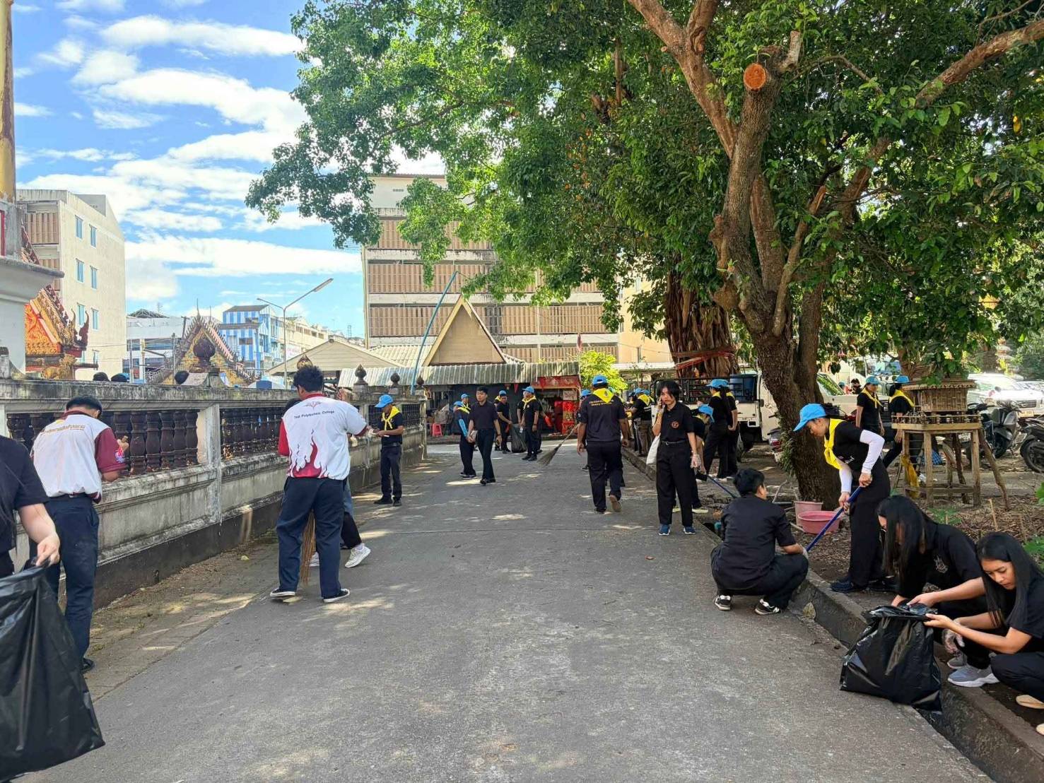 วันศุกร์ที่ 5 ธันวาคม 2568 นายจิรพงค์ ร่มเงิน ผู้อำนวยการวิทยาลัยเทคนิคตราด มอบหมายให้นายอภิภช เจริญกิจ หัวหน้าสาขาวิชาช่างไฟฟ้า นำนักเรียน นักศึกษา เข้าร่วมกิจกรรมจิตอาสาพัฒนา เนื่องในวันสำคัญของชาติไทย วันคล้ายวันพระราชสมภพ พระบาทสมเด็จพระบรมชนกาธิเบศร มหาภูมิพลอดุลยเดชมหาราช บรมนาถบพิตร โดยมีนายพิริยะ ฉันทดิลก ผู้ว่าราชการจังหวัดตราด เป็นประธานในพิธี เพื่อร่วมกันบำเพ็ญสาธารณประโยชน์ ฉีดล้างทำความสะอาดอุโบสถ ทำความสะอาดบริเวณโดยรอบ รวมถึงตัดแต่งต้นไม้และกำจัดวัชพืช ณ วัดกลาง (ชัยมงคล) ตำบลบางพระ อำเภอเมือง จังหวัดตราด