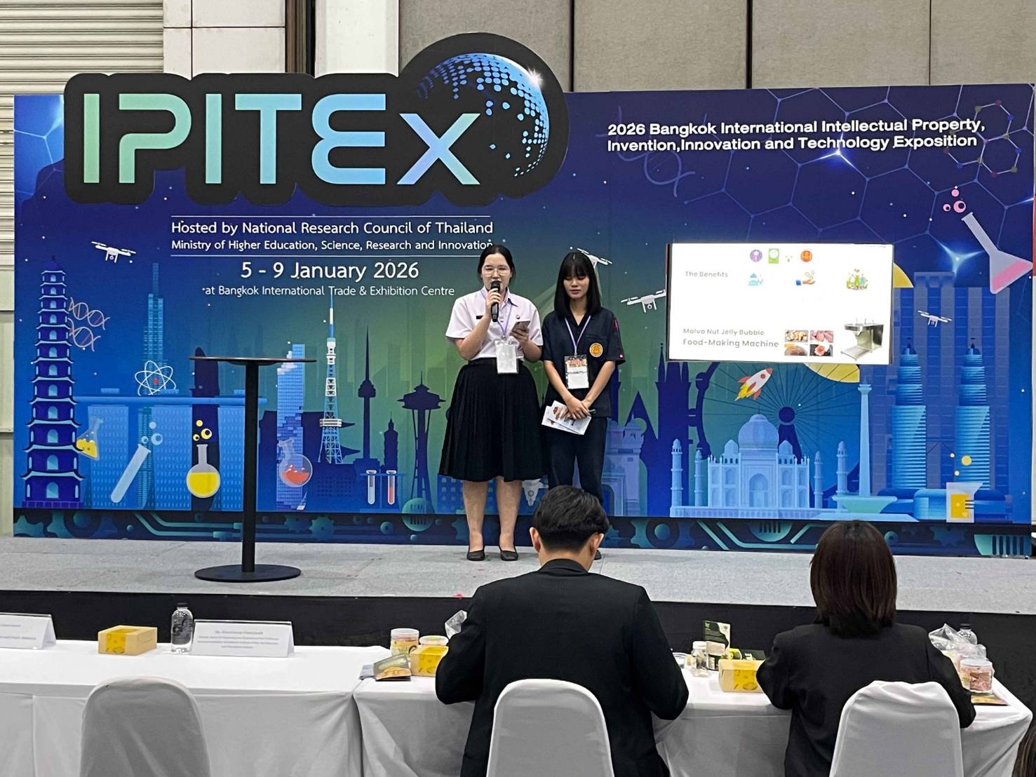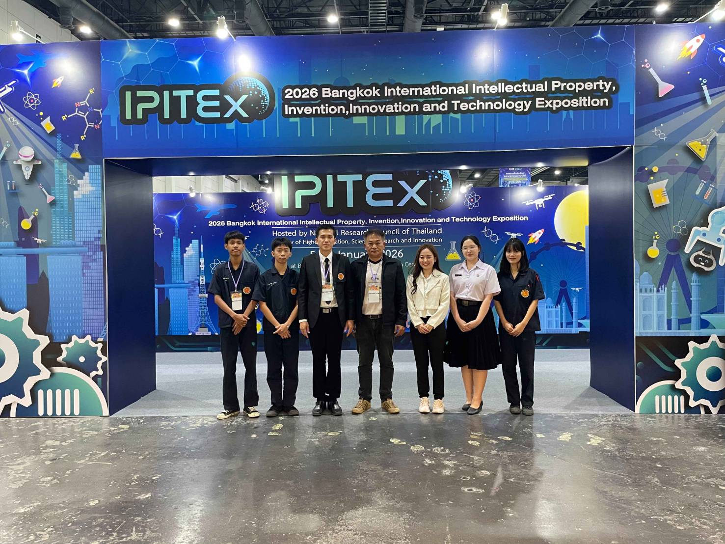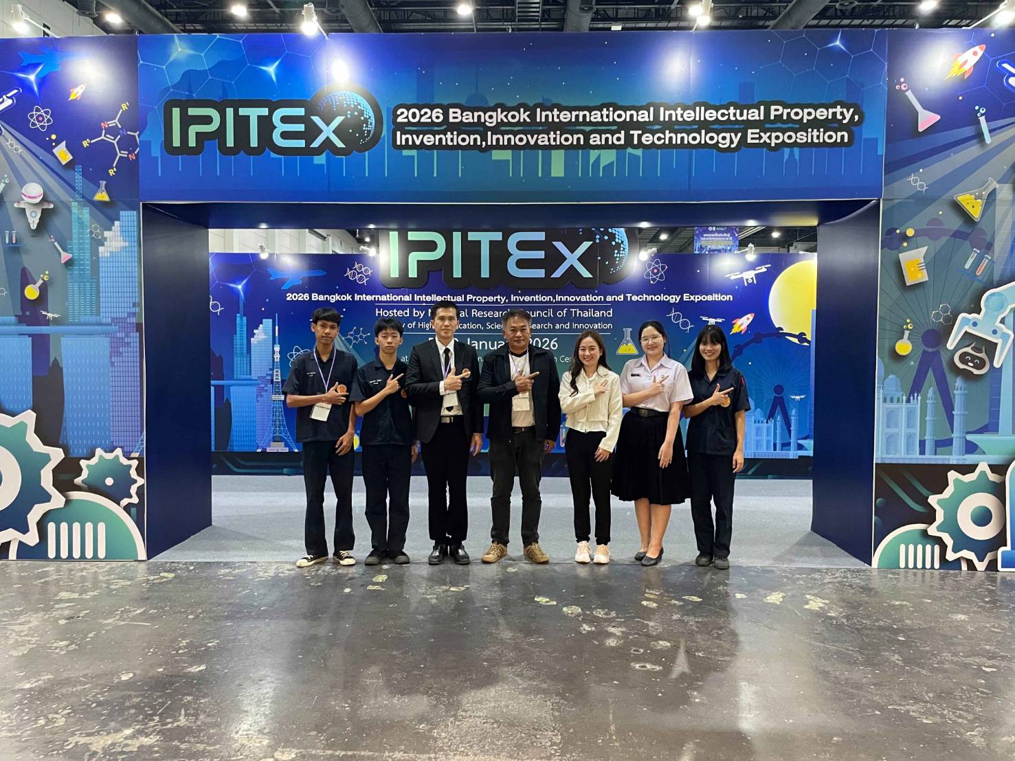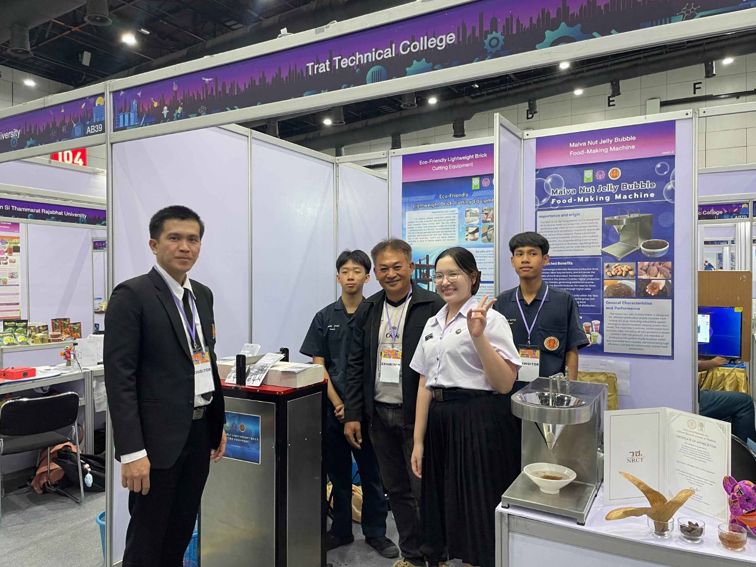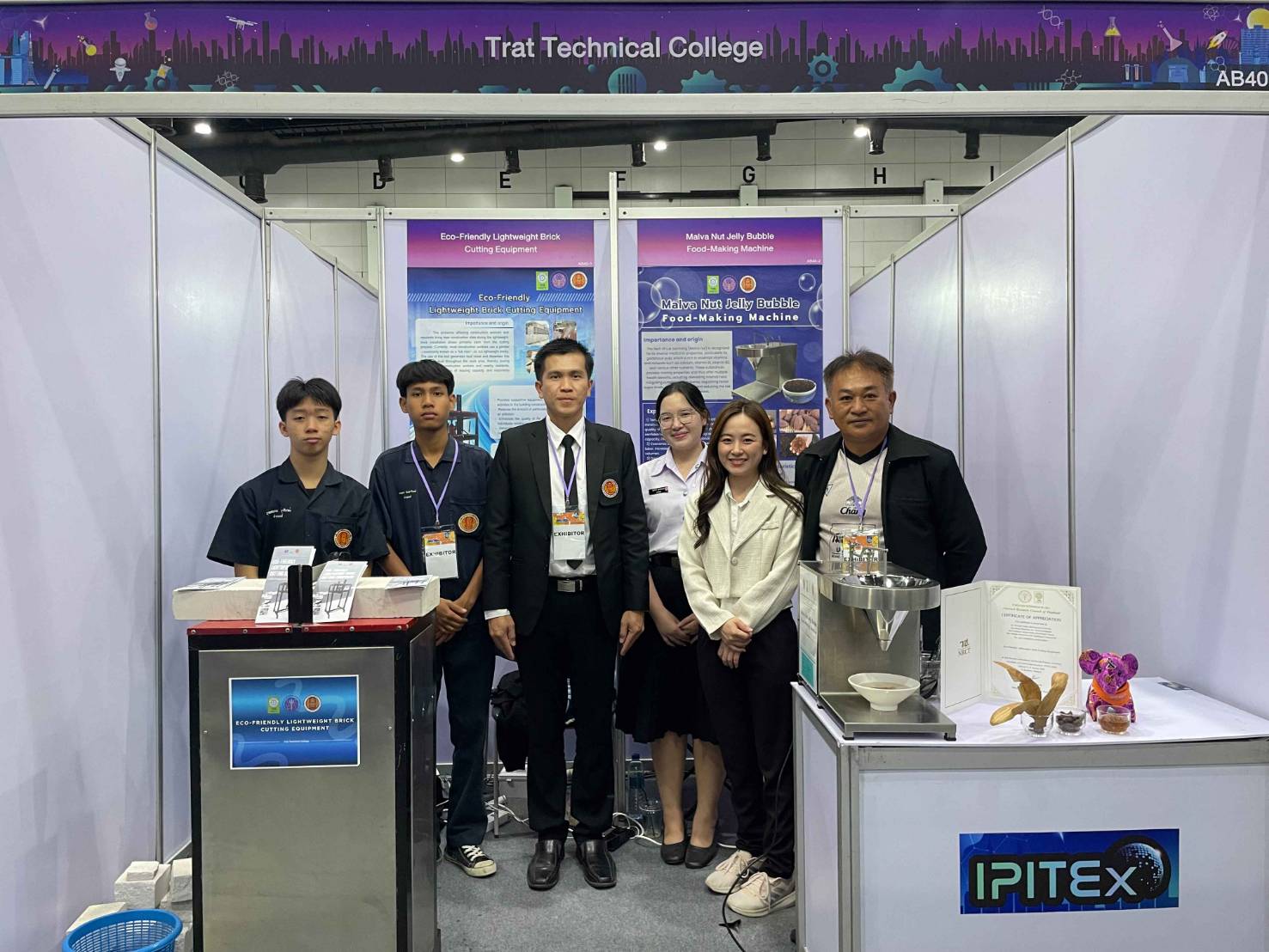 วันพฤหัสบดีที่ 8 มกราคม 2569 นายจิรพงค์ ร่มเงิน ผู้อำนวยการวิทยาลัยเทคนิคตราด มอบหมายให้นายสราวุธ เรืองขจิต รองผู้อำนวยการฝ่ายแผนงานและความร่วมมือ ได้ไปเยี่ยมชมและให้กำลังใจกับนักเรียน นักศึกษา และครูที่ปรึกษา ในการประกวดและจัดแสดงมหกรรมสิ่งประดิษฐ์ และนวัตกรรมนานาชาติ “2026 Bangkok International Intellectual Property, Invention, Innovation and Technology Exposition” (IPITEx 2026) ในงานวันนักประดิษฐ์ ประจำปี 2569 ซึ่งวิทยาลัยเทคนิคตราด ได้ส่งผลงานเข้าประกวดด้วยกัน จำนวน 2 ผลงาน ได้แก่ 1. Malva Nut Jelly Bubble Food-Making Machine (เครื่องผลิตบับเบิ้ลเจลลี่จากเนื้อสำรอง) 2. Eco-Friendly Lightweight Brick Cutting Equipment (อุปกรณ์ตัดอิฐมวลเบารักษ์โลก) ระหว่างวันที่ 5 - 9 มกราคม 2569 ณ EVENT HALL 104 ศูนย์นิทรรศการและการประชุมไบเทค บางนา กรุงเทพมหานคร